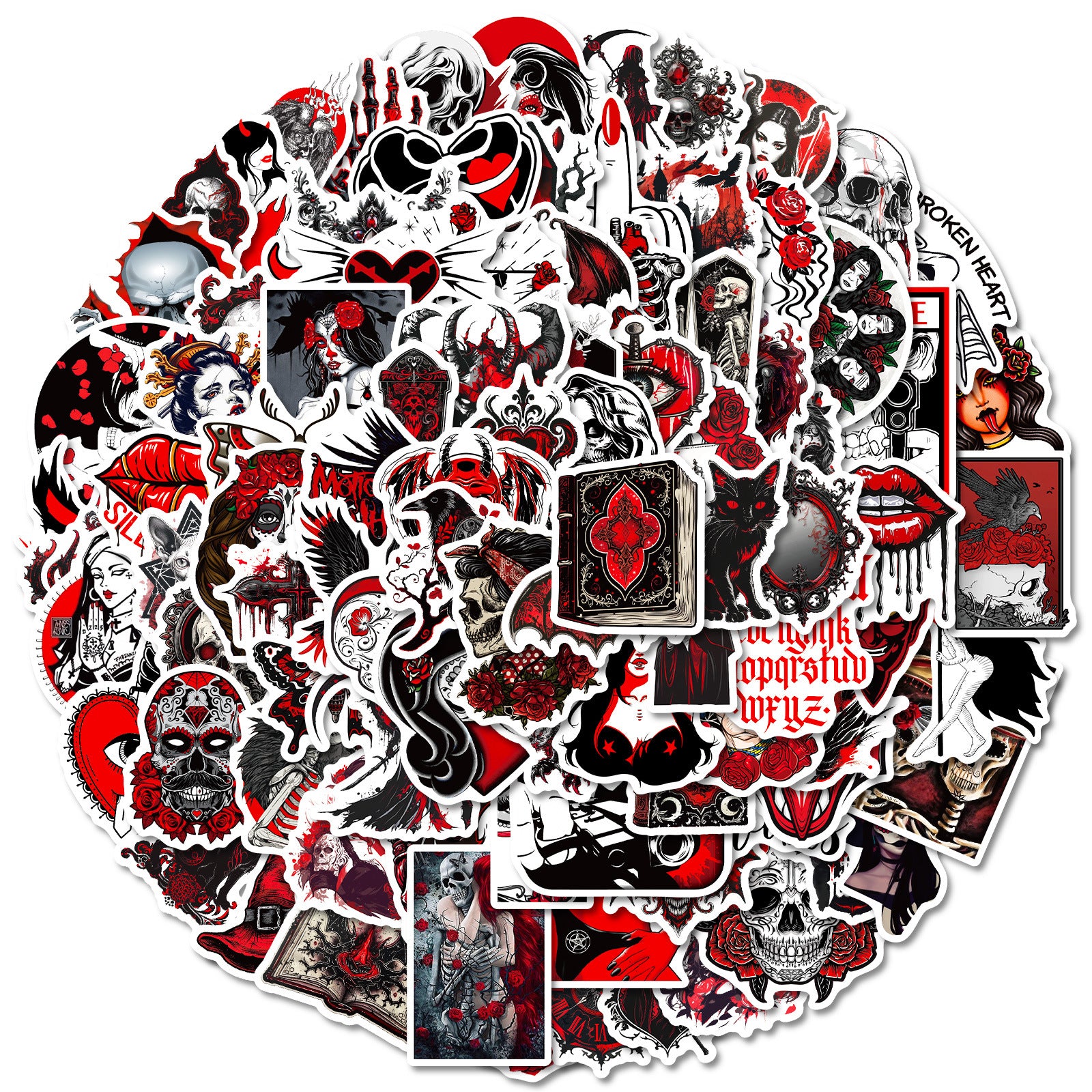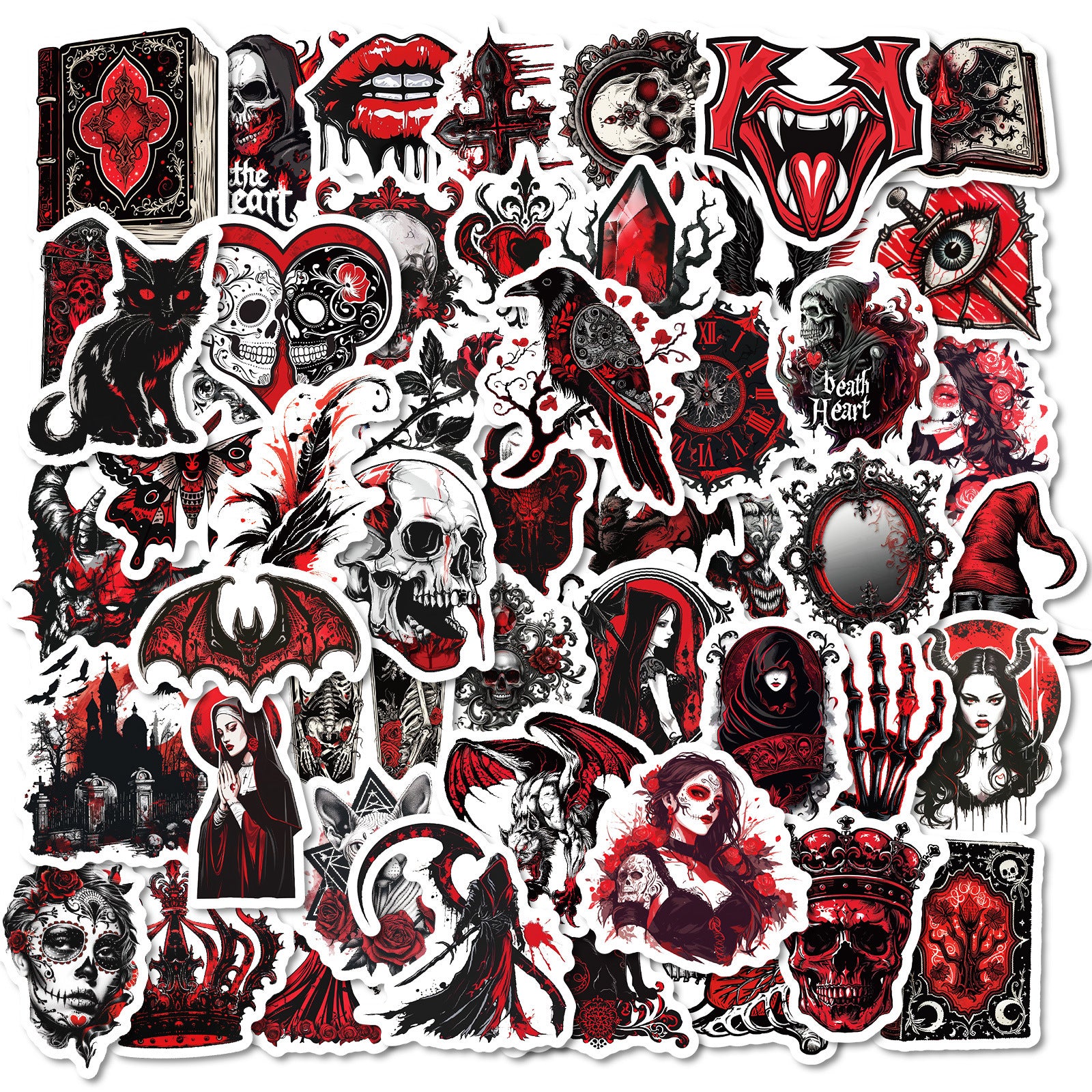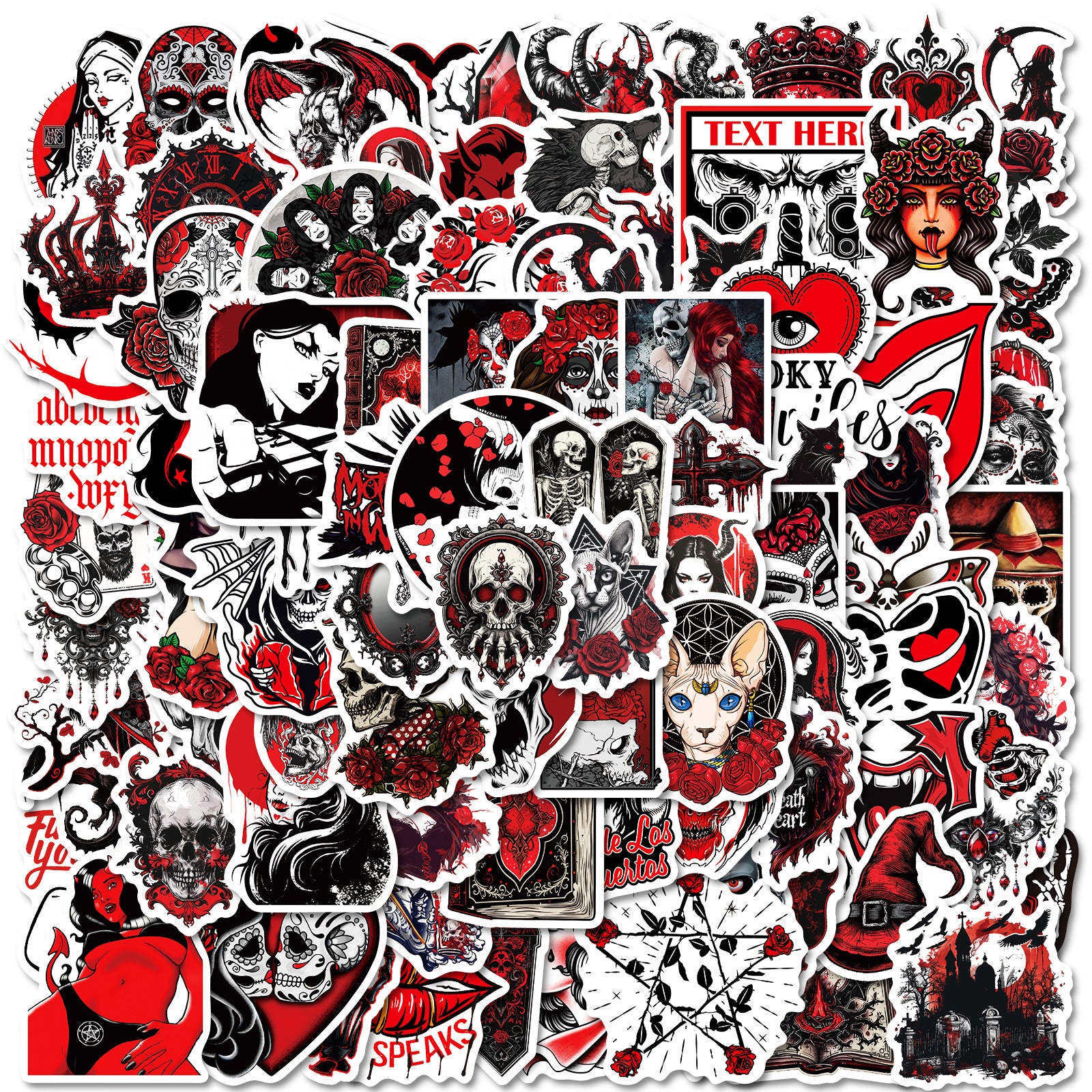 | Quantity | 100 unique gothic redhalloween stickers |