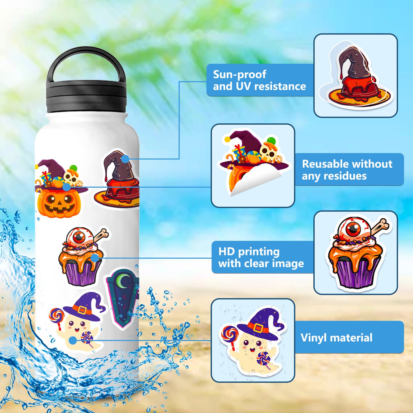 These versatilehalloween stickersare perfect for decorating laptops💻, water cups🥤, phone cases📱Skateboards🛹, notebooks📔, trophies🏆helms🪖, bikes🚲, luggage🧳, and more!They’re self-adhesive, waterproof💧, sunproof🌞, scratch-resistant✨, and reusable🔄, making them ideal for DIY crafts, school projects, oreven for creating your personalhalloween sticker books.These are the ultimatecute halloween stickersthat kids and adults will love alike!🎃